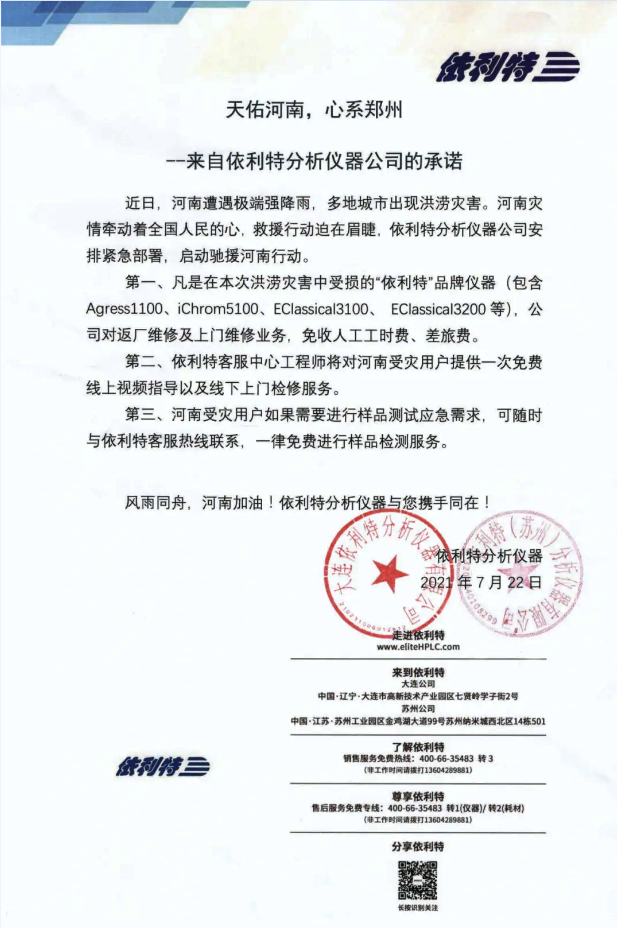 天佑河南,心系鄭州——來(lái)自依利特分析儀器公司的承諾