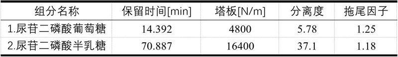 依利特新款的EClassical3200液相色譜儀搭配性能獨(dú)特的Asahipak NH2P-50 4E色譜柱,對(duì)客戶樣品中的尿苷二磷酸葡萄糖和尿苷二磷酸半乳糖進(jìn)行分析,峰形對(duì)稱性較好,分離度很大,既可滿足定性定量分析的需求,又可滿足大規(guī)模單體制備的需求。