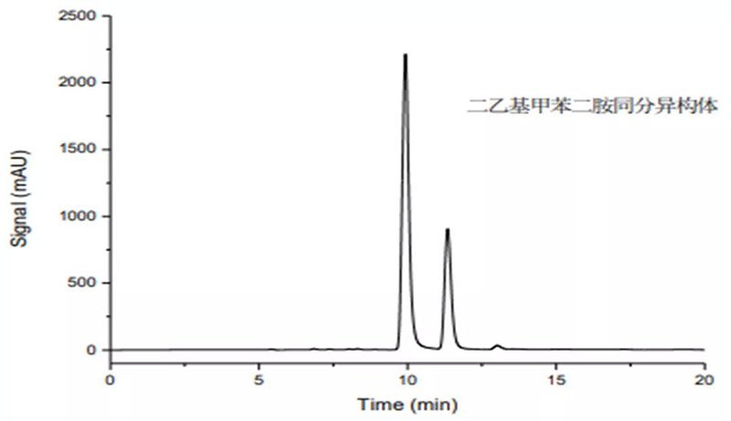 二乙基甲苯二胺是兩種異構體混合物,即3,5-二乙基-2,4-二氨基甲苯和 3,5-二乙基-2,6-二氨基甲苯,簡稱DETDA,長期暴露在空氣中顏色會變深,二乙基甲苯二胺易燃,腐蝕性強,皮膚、眼睛接觸能引起刺激和嚴重灼傷,誤服有害。依利特使用EClassical 3200液相色譜儀匹配經典的SinoPak C18色譜柱,對二乙基甲苯二胺異構體進行分析檢測。