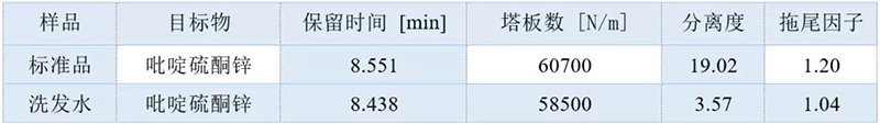 吡啶硫酮鋅譜圖中色譜參數(shù)表