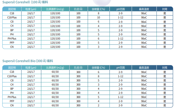 Supersil Coreshell 系列色譜柱是依利特新推出的一款核殼色譜柱。該色譜柱填料是以硅膠為基質(zhì),在表面多孔填料上鍵合不同官能團(tuán)的實(shí)心核顆粒。