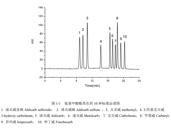 圖 1-1 氨基甲酸酯類農(nóng)藥 10 種標準品譜圖