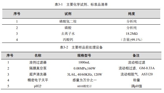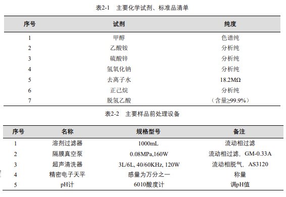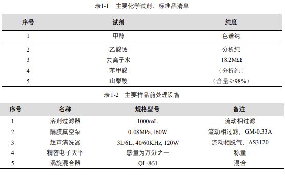 實(shí)驗(yàn)過(guò)程中其它玻璃器皿還包括容量瓶 (100mL、50mL、25mL、10mL)、移液槍 (0~1000μL,0~5000μL)、移液槍槍頭 (1mL,5mL)、一次性 PVC 手套、一次性口罩、進(jìn)樣針、濾膜等若干。