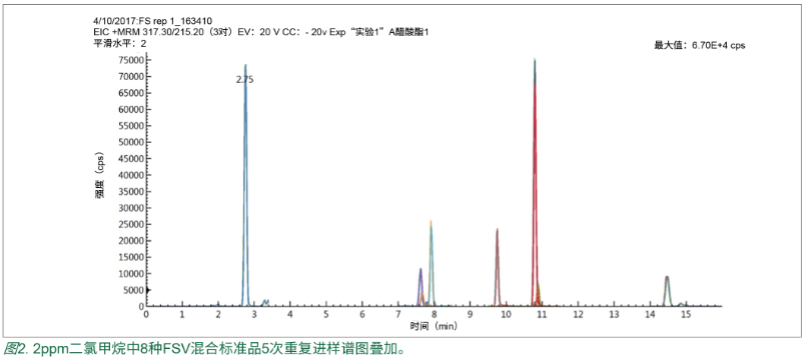 基于上述考慮,本文提出了分析物在 100% 二氯甲烷中溶解 / 稀釋并通過反相 UHPLC-MS/MS 分析 FSV 的一種方法。