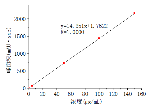 圖3-5 標(biāo)準(zhǔn)品濃度與峰面積線性關(guān)系圖
