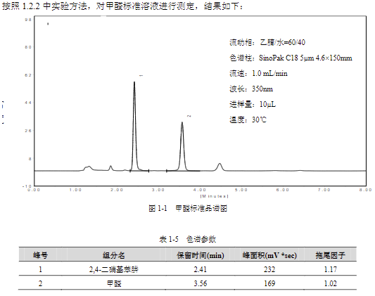 1.2 高效液相色譜法測定甲醛的含量