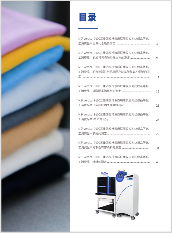 文集覆蓋紡織品等化工消費品中 9 大類高關(guān)注度物質(zhì)的檢測,適配不同基質(zhì)與法規(guī)要求,具體包括: