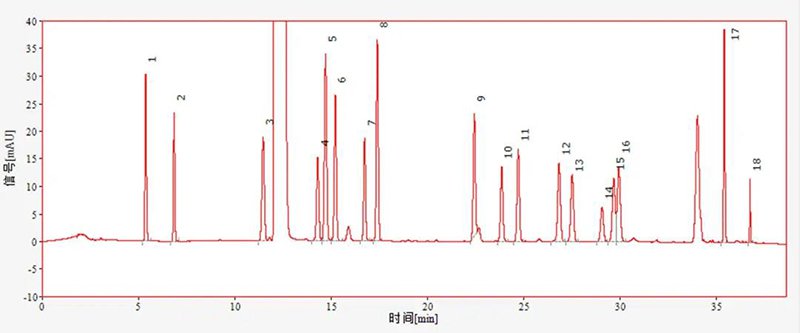 小分子肽是介于氨基酸與蛋白質(zhì)之間一種生化物質(zhì),它比蛋白質(zhì)分子量小,又比氨基酸分子量大,是一個蛋白質(zhì)的片段。在人體內(nèi)起重要的生理作用,大家都知道,控制疾病的源頭就是保證細(xì)胞的營養(yǎng)充足,而小分子肽是人體易被細(xì)胞吸收利用的化合物之一。依利特使用EClassical 3200液相色譜儀匹配經(jīng)典的Elite AAK氨基酸分析專用色譜柱,對樣品中的含量進(jìn)行分析檢測。