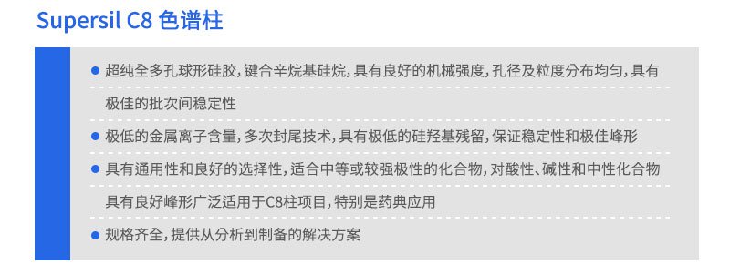國(guó)產(chǎn)UHPLC色譜柱30年專(zhuān)注液相色譜研發(fā)的廠家自主研發(fā),采用超純硅膠和雜化填料技術(shù),涵蓋Supersil、SinoPak等系列,具有高柱效、寬pH耐受(1-12.5)和長(zhǎng)壽命。適用于極端條件下的酸性、堿性及極性化合物分析,尤其適合生物制藥和食品檢測(cè)領(lǐng)域,提供分離性能。