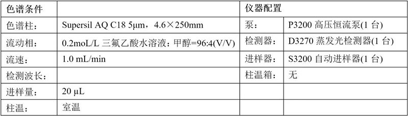 硫酸慶大霉素是氨基糖苷類抗生素,是中國獨立自主研制成功的抗生素,主要通過抑制細菌蛋白質(zhì)的合成,起到抗菌作用。由于分子中缺少發(fā)色基團或熒光物質(zhì),因而難以采用常規(guī)的紫外檢測器來對其進行檢測。依利特使用EClassical 3200高效液相色譜儀搭配蒸發(fā)光檢測器和Supersil AQ C18色譜柱,對硫酸慶大霉素進行分析檢測。