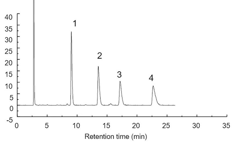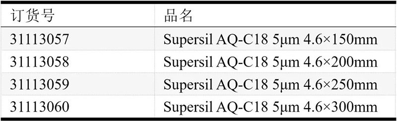 如上所示,使用Supersil AQ C18色譜柱再搭配蒸發(fā)光檢測器,硫酸慶大霉素標準品中四種組分分離度較好,且峰形很好。