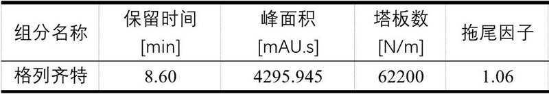 依利特新款的EClassical3200液相色譜儀搭配經(jīng)典的Supersil ODS2色譜柱,對格列齊特藥品進(jìn)行分析,峰形對稱性很好,柱效也很高,滿足定性定量分析的需求。