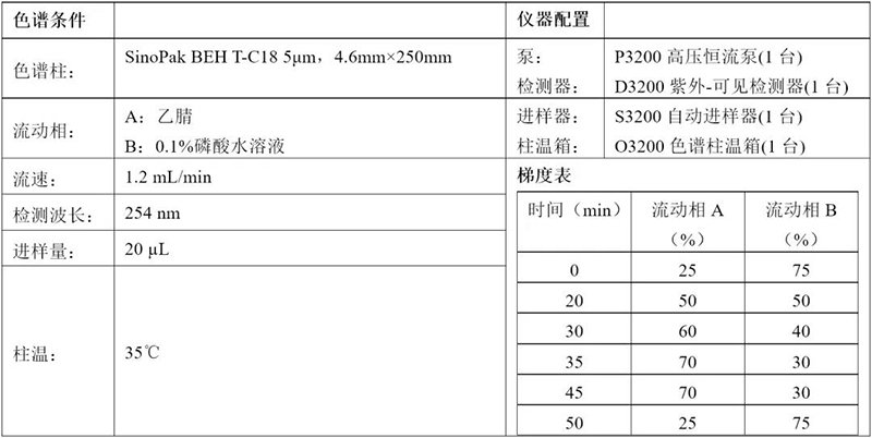 使用EClassical 3200高效液相色譜儀配新推出的SinoPak BEH T-C18色譜柱分析氯雷他定樣品,柱效高,峰形好,12分鐘左右即可完成分離,分析速度快,完全可以滿足氯雷他定定性定量分析的需求。