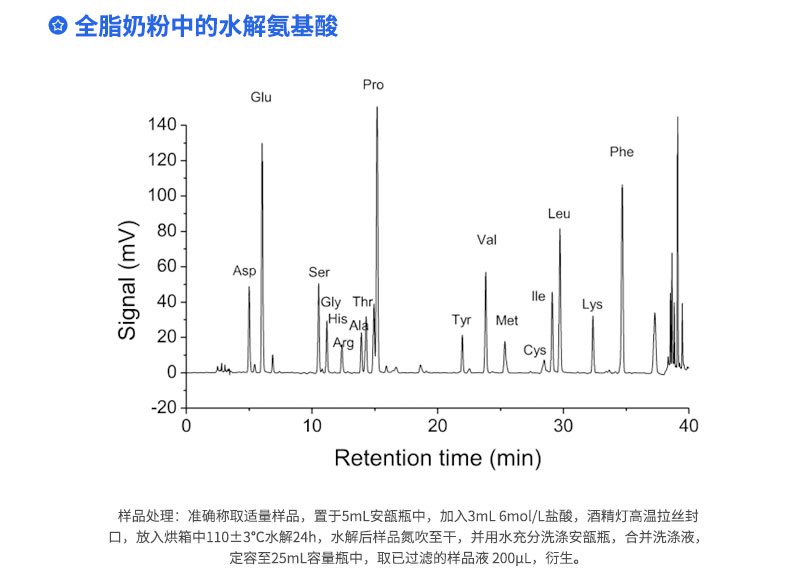 Elite-AAP 氨基酸分析系統(tǒng)基于HPLC 技術(shù)高精度分析各種復(fù)雜基質(zhì)中的氨基酸。以PITC(異硫氰酸苯酯)為衍生試劑完成柱前衍生后,進行高效液相色譜梯度分離以及紫外檢測,同時分析17種基本氨基酸,分離效果均達到基線分離。系統(tǒng)穩(wěn)定性實驗顯示,連續(xù)7次進樣,17種氨基酸的保留時間RSD≤0.40%,峰面積RSD≤1.0%;方法靈敏度試驗以天冬氨酸為例,低檢出濃度為0.5×10-6mol/L;檢測成本低,緩沖溶液和有機溶劑作流動相,不需要特殊試劑。