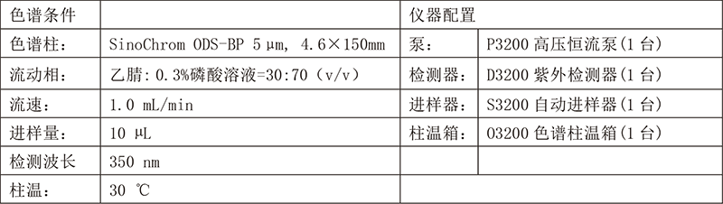 北劉寄奴是一味活血藥,是玄參科植物陰行草的干燥全草。北劉寄奴味苦,性寒,歸脾、胃、肝、膽經(jīng),有活血祛瘀,通經(jīng)止痛之功效。依利特使用EClassical 3200液相色譜儀匹配經(jīng)典的SinoChrom ODS-BP色譜柱,對(duì)北劉寄奴樣品中木犀草素含量進(jìn)行分析檢測。