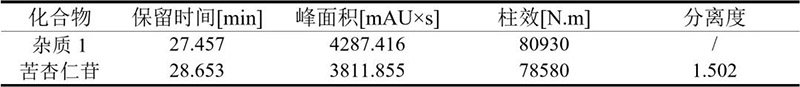 苦杏仁苷色譜圖參數(shù)表