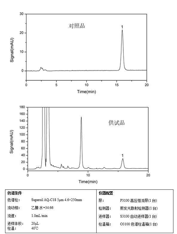 2.供試品溶液:取裝量差異項(xiàng)下的本品內(nèi)容物,混勻,滴丸取約0.7g,精密稱定,置10mL量瓶中,加4%氨溶液7mL,超聲處理(功率120W,頻率40kHz)20~25分鐘使充分溶散,放冷,用4%氨溶液稀釋至刻度,搖勻,以1mL/min的速度加在已處理好的C18固相萃取小柱(500mg,先以甲醇5mL預(yù)洗,再以水5mL預(yù)洗)上,以水5mL洗脫,棄去洗脫液,再用甲醇2mL緩慢洗脫至2mL量瓶中,加甲醇至刻度,搖勻,既得。